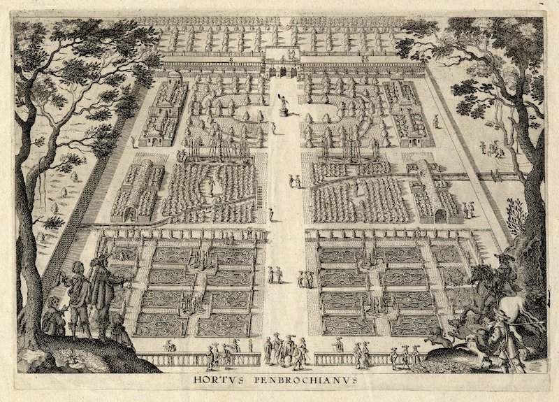 This print is copied from the large folding plate “Wilton Garden” (Wing C1530), which was most likely etched by Isaac de Caus, capturing the garden he designed for the 4th Earl of Pembroke, and appeared in Hortorum viridariorumque noviter in Europa (1655). Folger Shakespeare Library, the Folger Digital Image Collection.