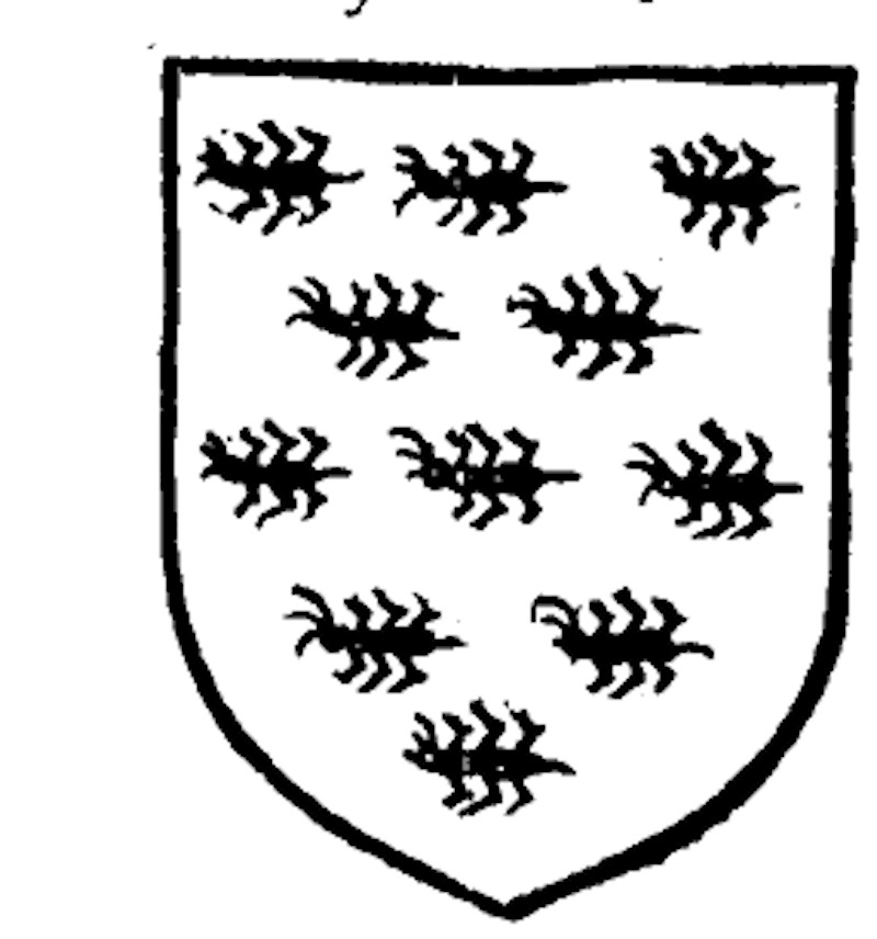 One example more I will propose which shall be of the Emmet, as in this next escutcheon. He beareth, argent, eleven emmets, 3.2.3.2.1 sable [this means an escutcheon with 11 black pismires on a silver background]. Of this silly creature also does Solomon make mention, saying, “the pismires a people not strong, yet prepare they their meat in summer” (Proverbs 30.25). To this simple and feeble creature is the slothful man sent to learn wisdom, where it is said, “Go to the pismire, O sluggard, behold her ways and be wise. For she having no guide, governor nor ruler, prepares her meat in the summer, and gathers her food in harvest, etc.” (Proverbs 6:6-7). Very often do the sacred scriptures propose unto us examples of brute creatures, as well to upbraid us with our vices as to stir us up unto virtue. For as there are in man sparks of the understanding and practice of heavenly spirits, even so the brute animals have certain shadows or footsteps of the virtuous qualities that are or ought to be in men. Moreover, “Ask now the beasts and the fouls of the heavens, and they shall tell thee; or speak to the earth, and it will show thee, or the fish of the sea, and they shall declare unto thee” (Job 12.7). And by the least of God’s creatures may we learn many exemplary inducements to virtue, as also many forcible dissuasions from vice, by reason of the apparent signs of wisdom, power, and mercy of God that are found in them. By the emmet or pismire may be signifed a man of great labor, wisdom and providence in all his affairs and of a pregnant and ready memory.