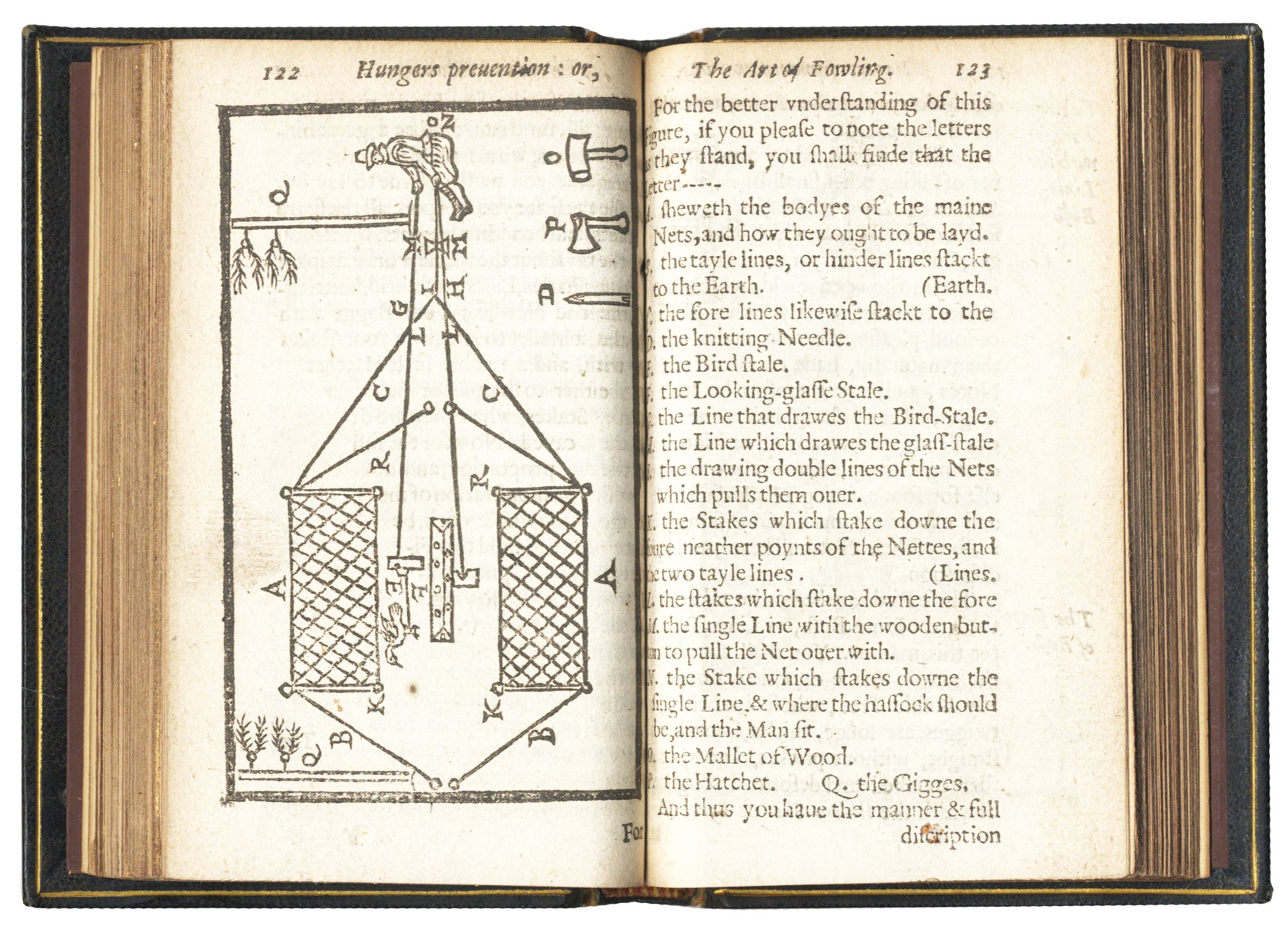 Gervase Markham, Hunger’s Prevention: Or, the Whole Art of Fowling by Water and Land. Containing All the Secrets Belonging to That Art, and Brought into a True Form or Method, by Which the Most Ignorant May Know How to Take Any Kind of Fowl, Either by Land or Water (London, 1621), pp. 122-3. Bonhams.